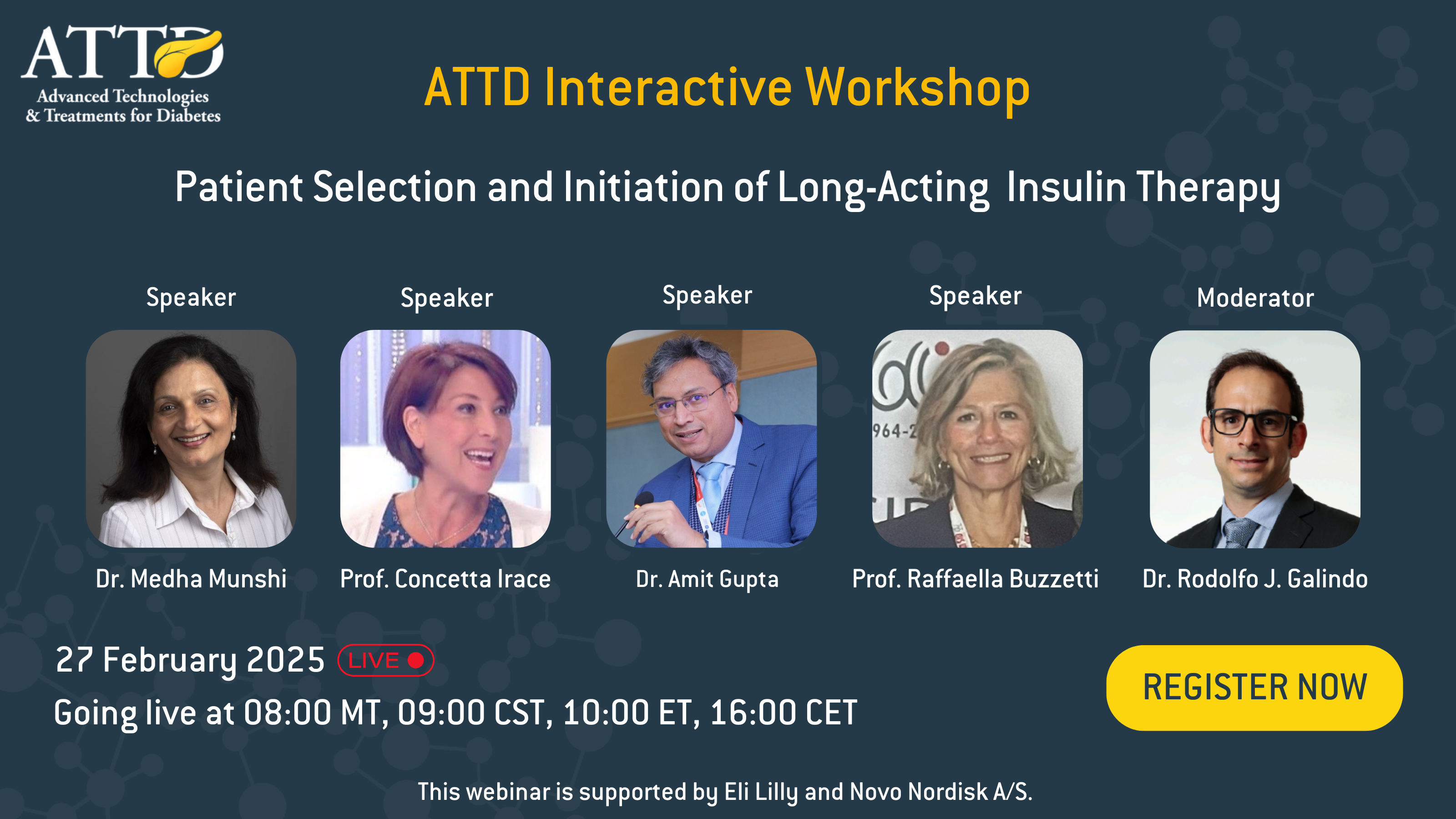 Despite advances in diabetes care, insulin initiation remains complex and nuanced. This ATTD Interactive Workshop is designed to provide clear, practical guidance through real-world case studies, helping you optimize patient selection, dosing, and titration strategies with confidence.