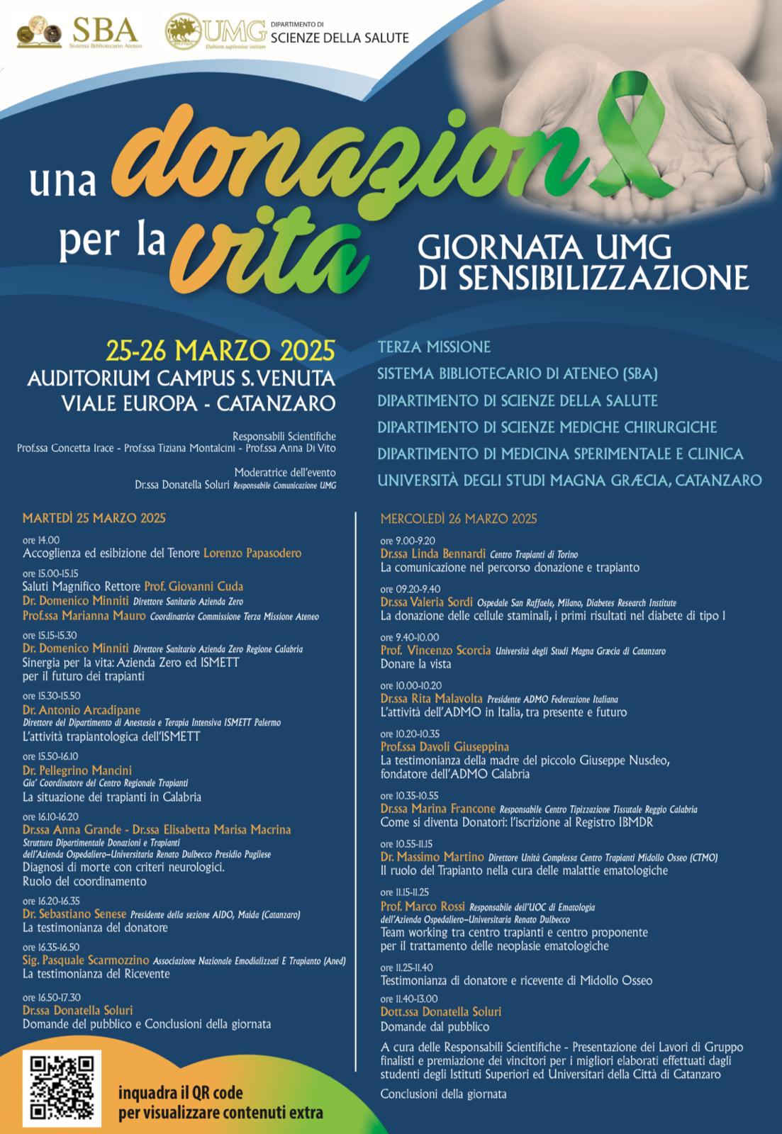 Presso l'Auditorium del Campus Salvatore Venuta dell'Università Magna Graecia di Catanzaro di svolgerà la giornata di Sensibilizzazione.