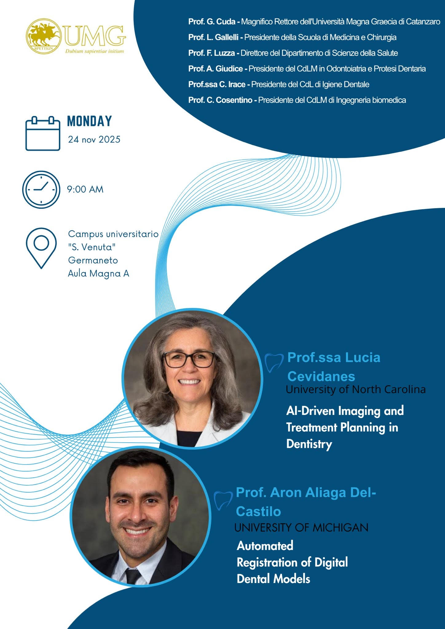 Evento - 24 novembre 2025 - Invito per saluti istituzionali - Lectures Proff. Cevidanes / Aliaga del-Castillo